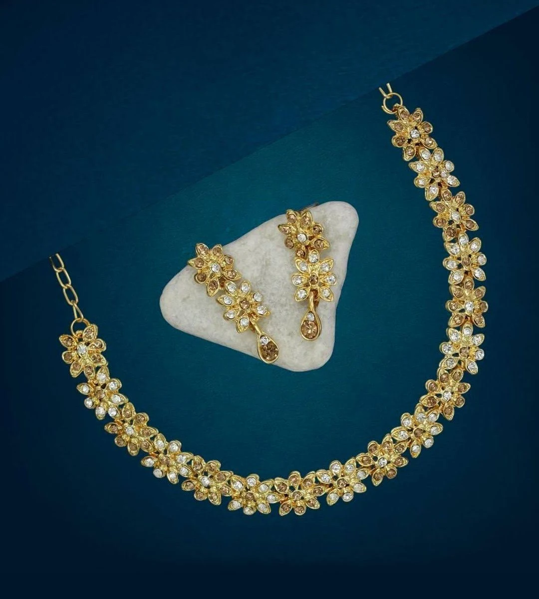 Shining Diva Women’s Fancy Wedding Party Crystal Diamonds Necklace Jewellery Set