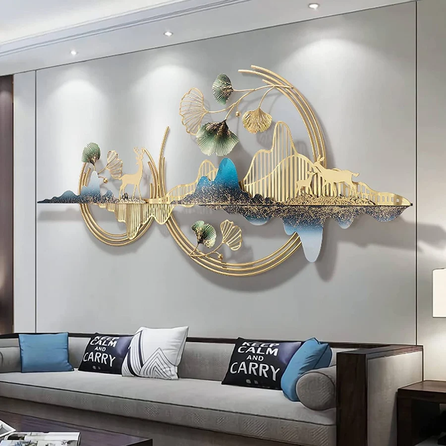 ULTRA SHINE HOME DECOR Metal Wall Art Mountain with Deer for Living Room (52 * 24 Inches) Wall Decoration | Modern Wall Hanging for Bedroom & Home &